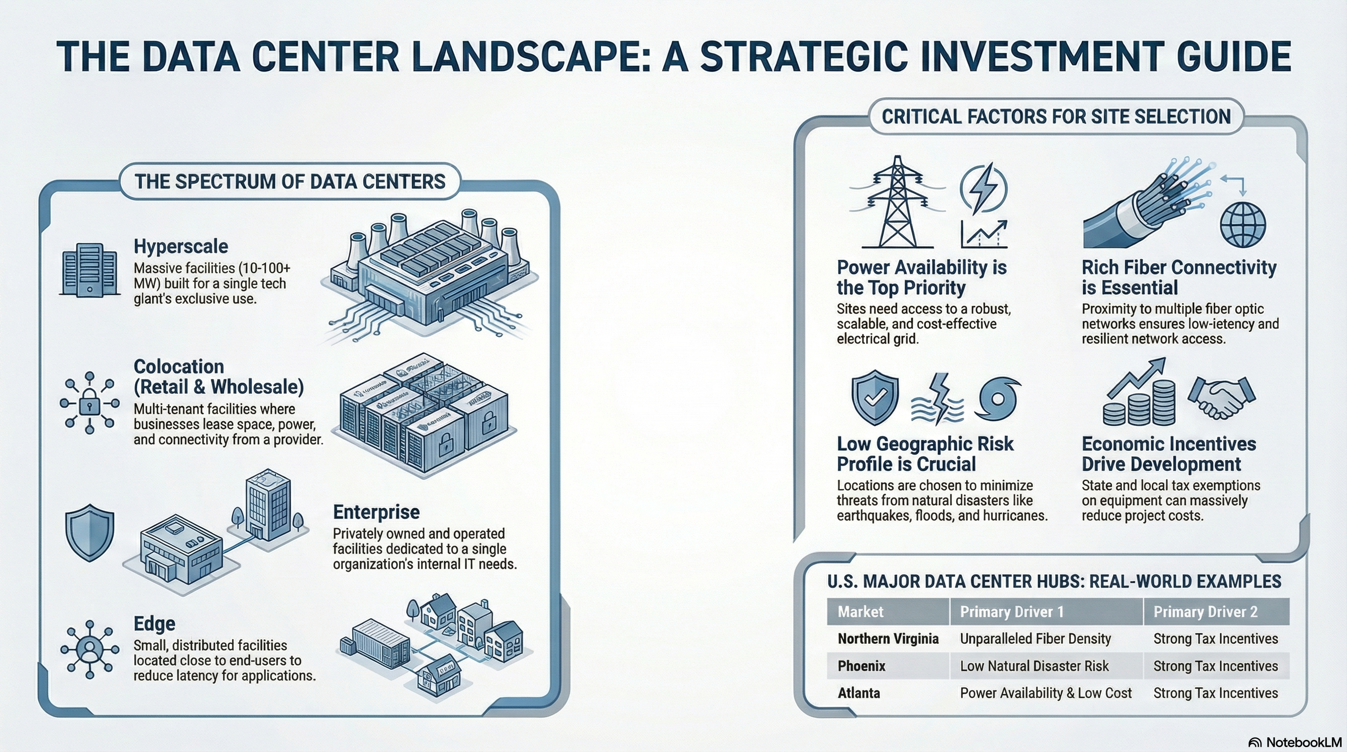 A comprehensive overview of the data center industry: key players, market trends, major markets, and growth forecasts. Perfect introduction for newcomers.